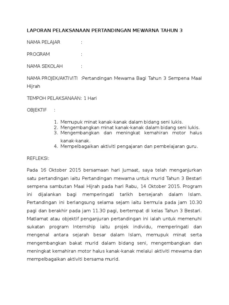 Peserta dikehendaki untuk melukis dan mewarna di dalam borang yang disediakan. A syania first time amira ke pertandingan mewarna di ambil dari pemilik. Laporan pelaksanaan pertandingan mewarna tahun 3 nama pelajar : Muat turun segera himpunan contoh gambar mewarna tahun 3 yang menarik dan boleh di cetakkan .
